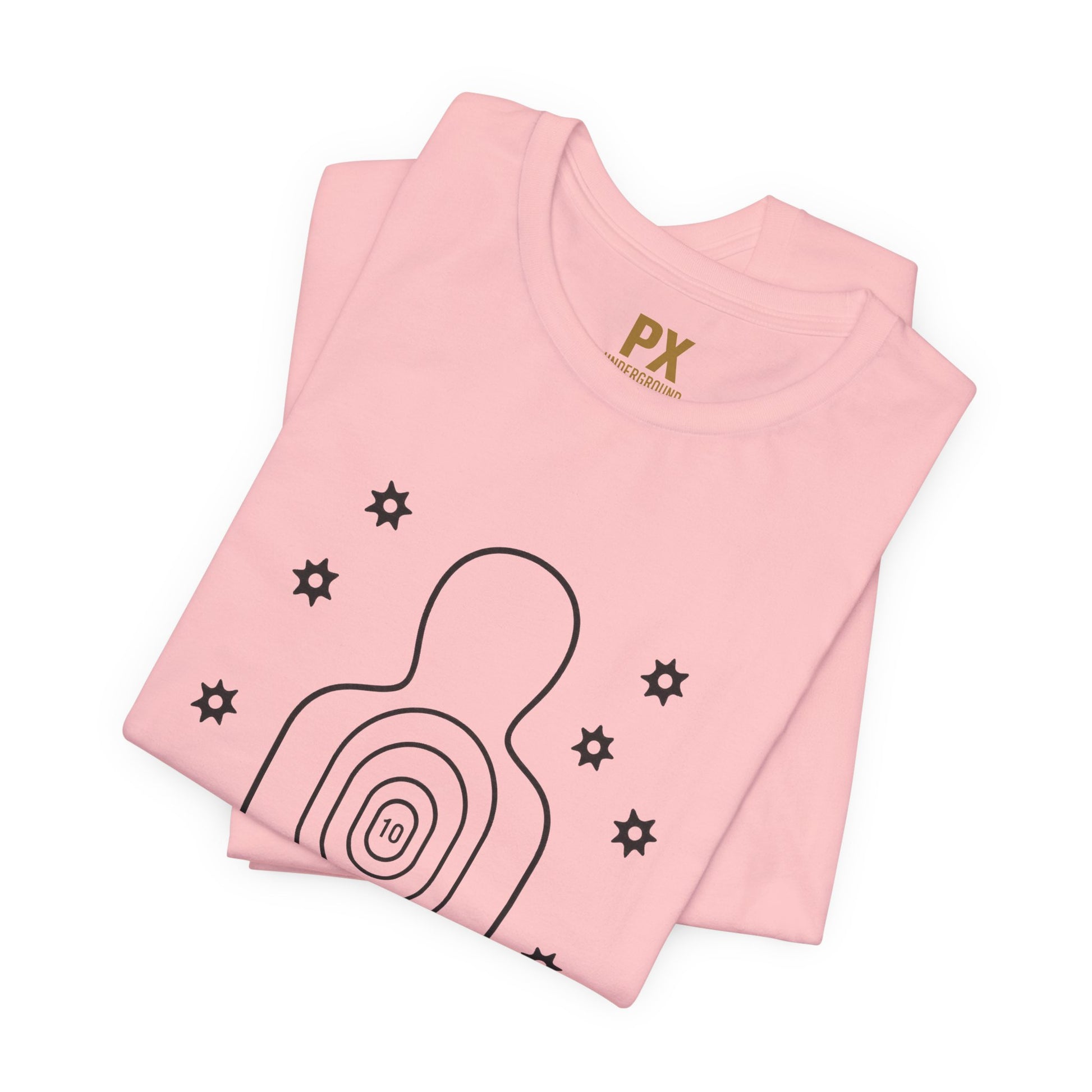 This tee carries a quiet confidence — for the guys who aim, focus, and hit every goal they set. Lightweight and breathable, it moves with you from warm-up to cooldown, showing a subtle shout-out on the sleeve that speaks to grit and consistency. Wear it to the range, the gym, or on days when you want your effort to do the talking. The clean crew neckline and modern retail fit make it easy to layer under a hoodie or pair with jeans for a no-fuss look that says you’re here to perform.